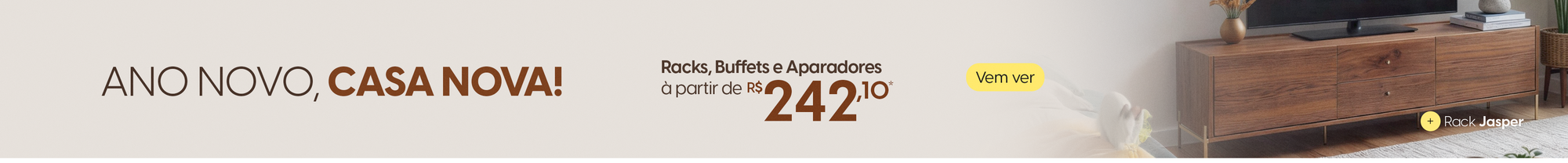 Pronta Entrega48% OFFRack para TV Até 75" 2 Gavetas 2 Portas Jasper 185 cm - Canella c/ Champanhe