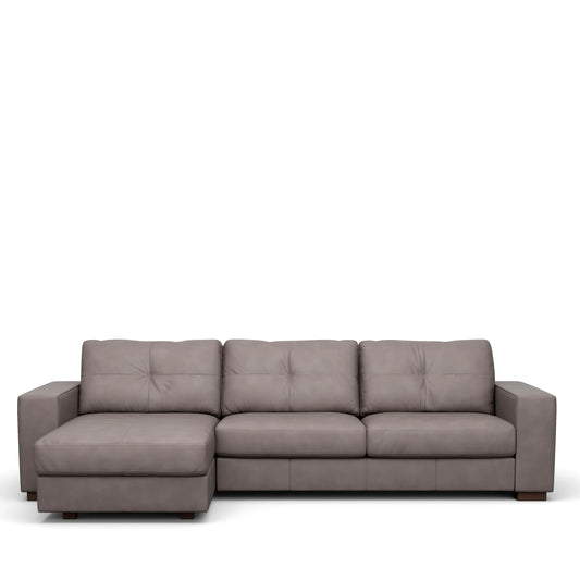 Pronta Entrega34% OFFSofá 5 Lugares com Chaise Lado Esquerdo Avalon 296 cm - Couro Natural Chumbo