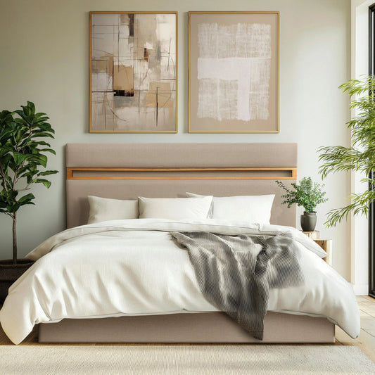 Pronta Entrega31% OFFCabeceira King Estofada Reid Canelada 208 cm - Linho Mescla Taupe