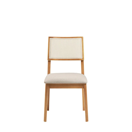 Conjunto de 2 Cadeiras de Madeira Maciça Estofada Evelyn - Natural c/ Linho Off White - Champanhe