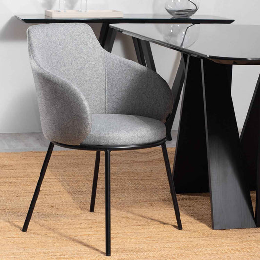 Cadeira de Aço Estofada com Braços Archie - Preto c/ Linho Mescla Cinza