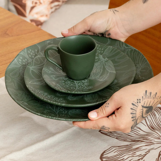 Jogo de 6 Pratos Rasos Orgânico Florear - Verde
