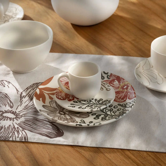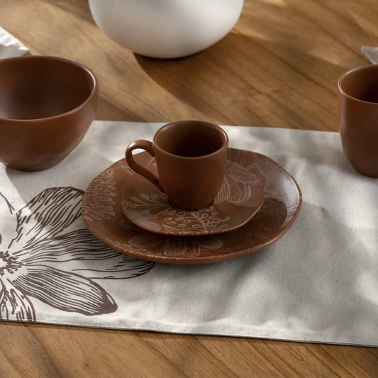 Jogo de 6 Xícaras de Café com Pires Orgânico Florear - Terracota