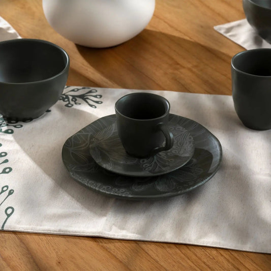 Jogo de 6 Xícaras de Café com Pires Orgânico Florear - Verde