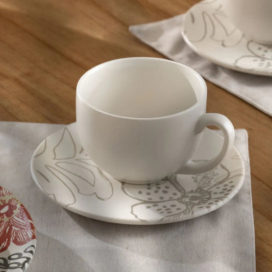 Jogo de 6 Xícaras de Chá com Pires Florear - Off White