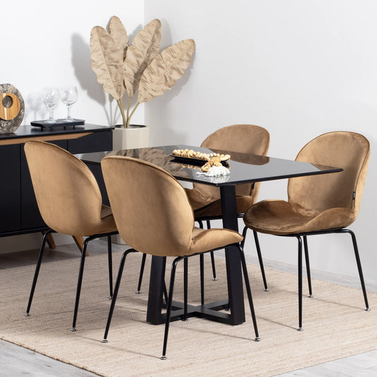 Cadeira Hannah - Veludo Mostarda c/ Preto