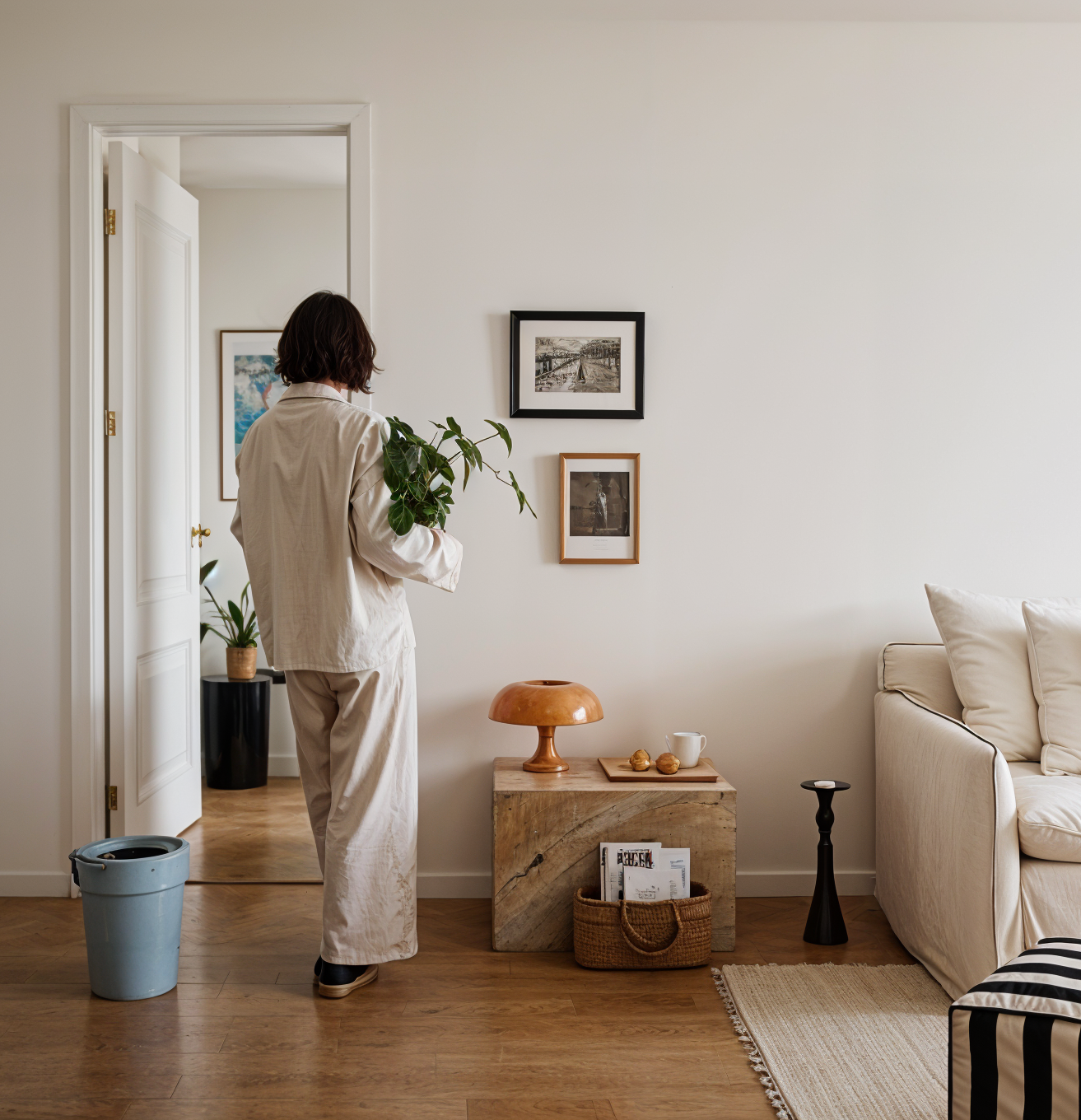 Cadeira de Madeira Maciça Estofada Ella - Natural c/ Linho Off White