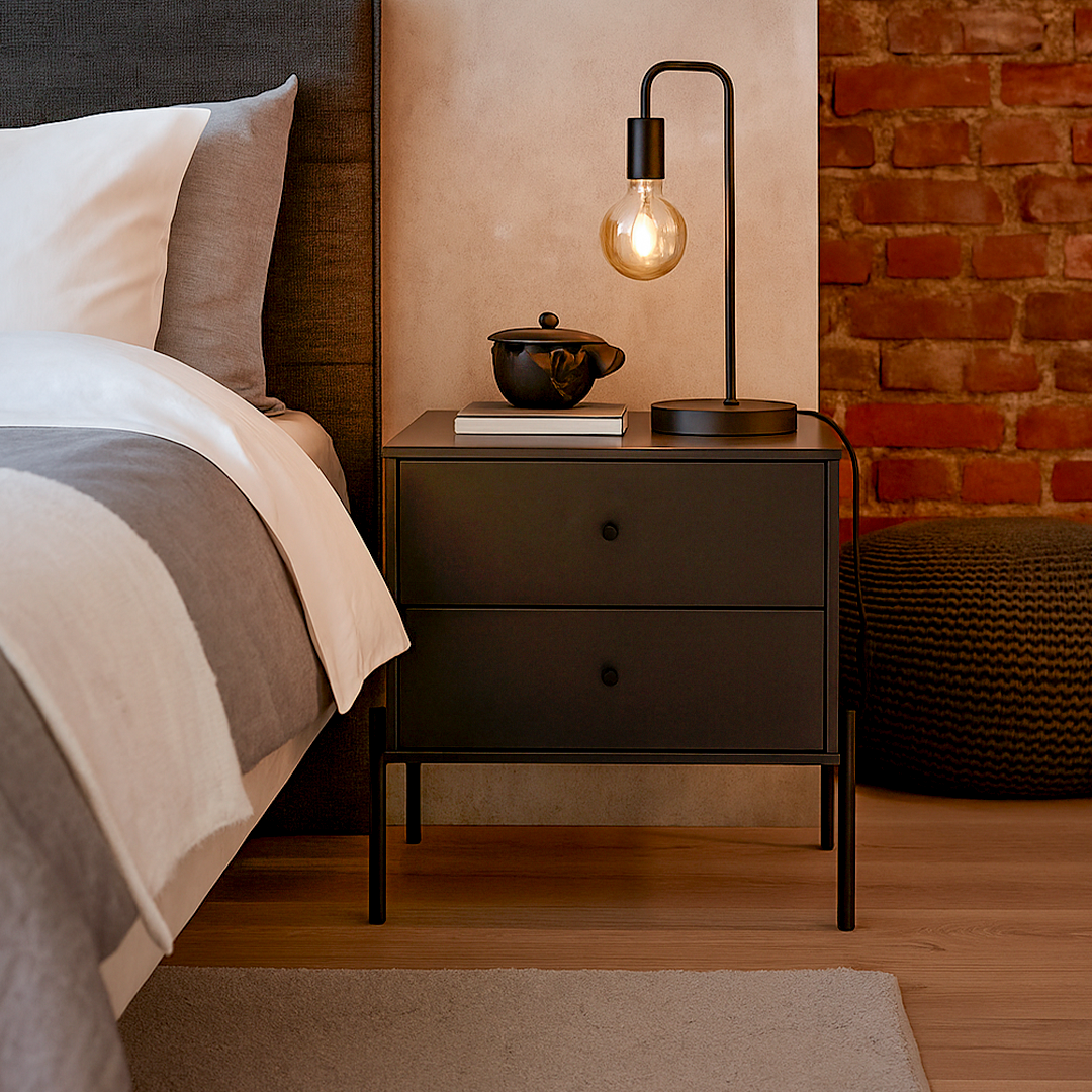 Mesa de Cabeceira 2 Gavetas Jasper 64 cm - Preto Fosco