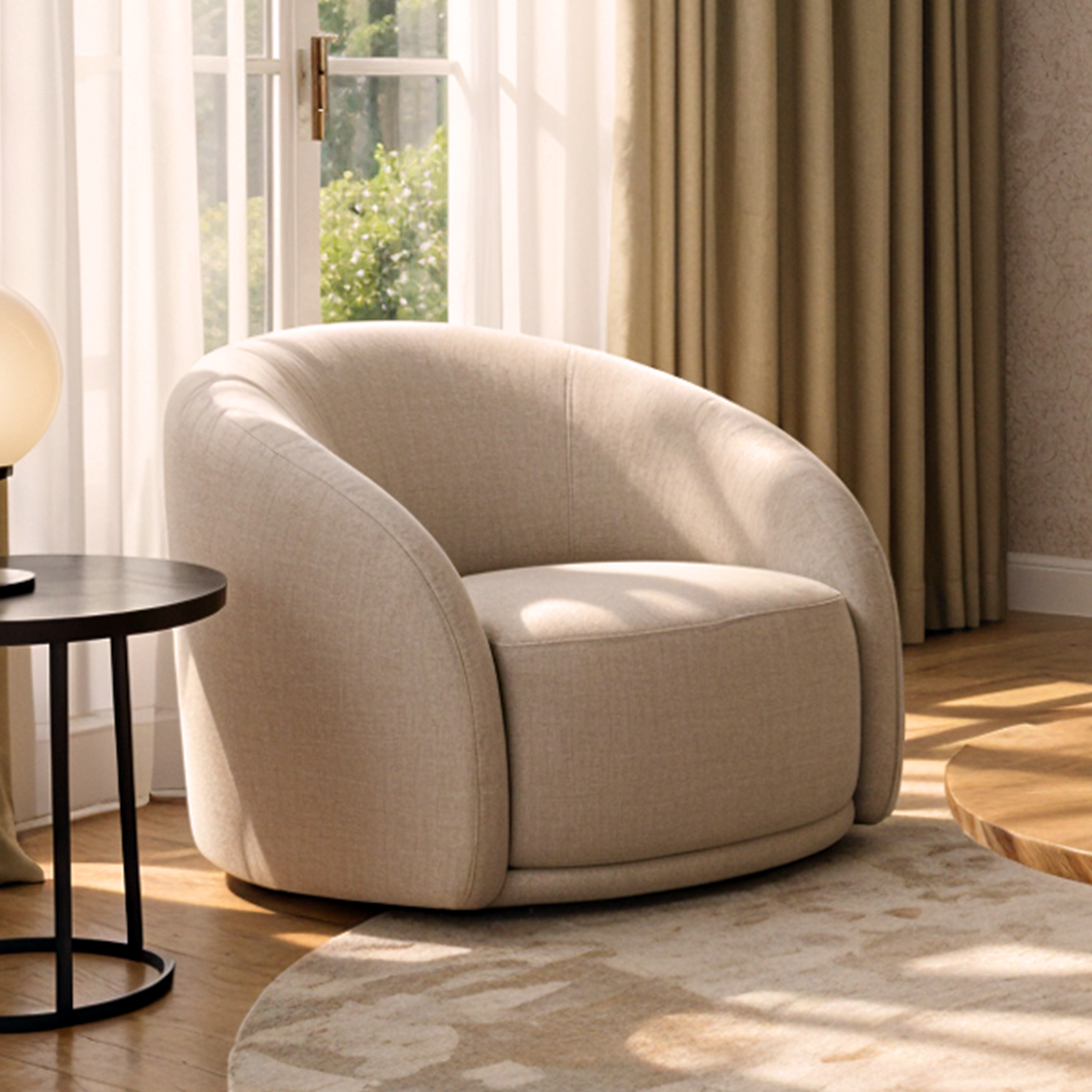 Poltrona Giratória Estofada Nicasia - Bouclé Off White