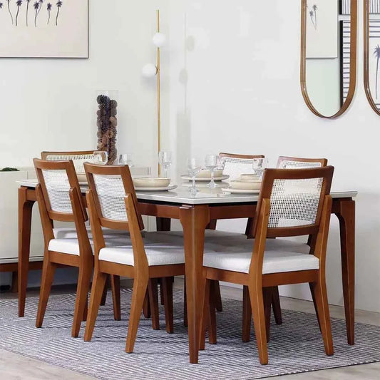 Pronta Entrega26% OFFConjunto de Jantar Mesa Retangular com Vidro 6 Cadeiras Kalina - Canella c/ Carbono