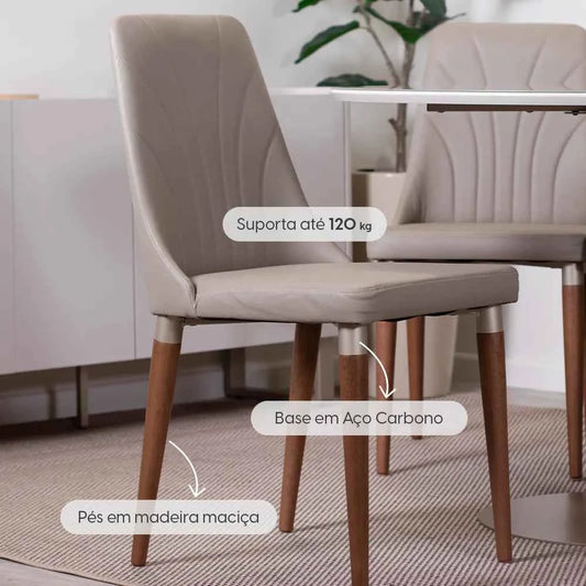 Pronta EntregaNew In34% OFFConjunto de 4 Cadeiras de Madeira Maciça Estofada Lara - Natural c/ PU Fendi - Champanhe