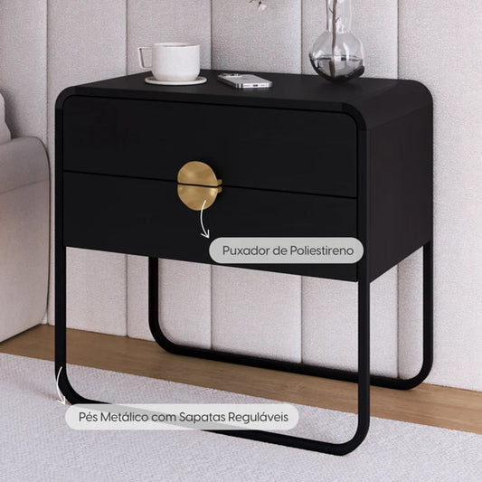 Mesa de Cabeceira com 2 Gavetas Dunna 60 cm - Preto c/ Dourado