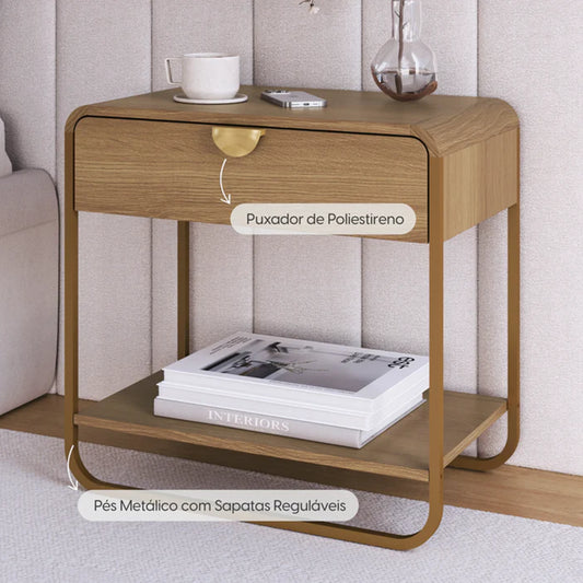 Mesa de Cabeceira com 1 Gaveta Dunna 60 cm - Mel c/ Dourado