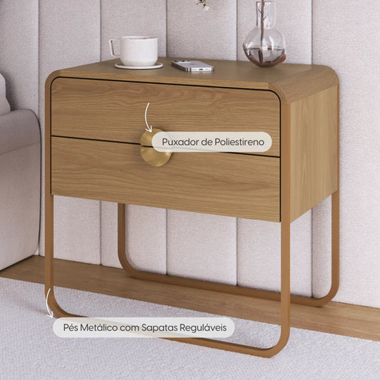 Mesa de Cabeceira com 2 Gavetas Dunna 60 cm - Mel c/ Dourado