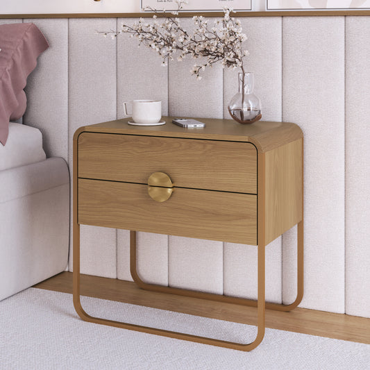 Pronta EntregaNew In33% OFFMesa de Cabeceira com 2 Gavetas Dunna 60 cm - Mel c/ Dourado