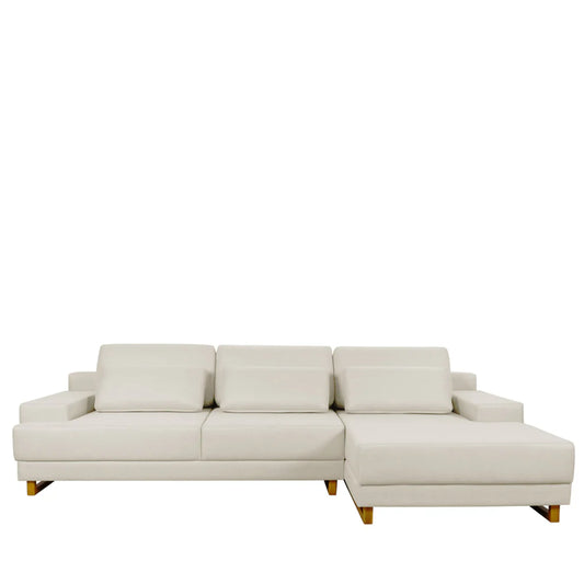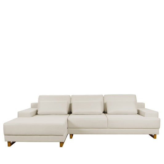 Sofá 6 Lugares com Chaise Lado Esquerdo Mônaco 330 cm - Linho Texturizado Bege c/ Natural