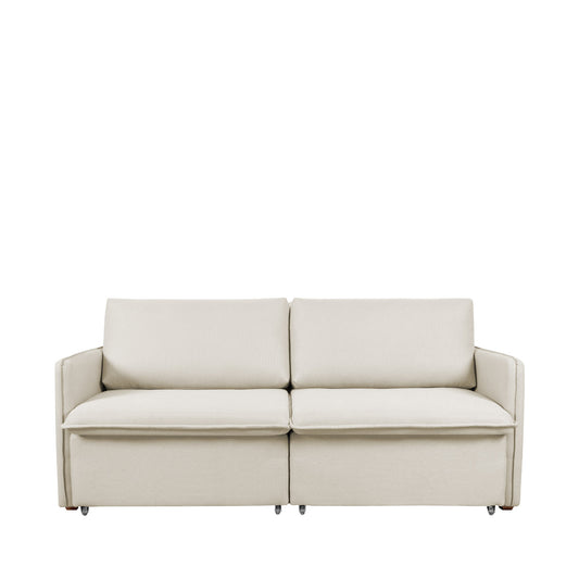 Sofá 3 Lugares Atlas 214 cm - Linho Texturizado Off White c/ Natural