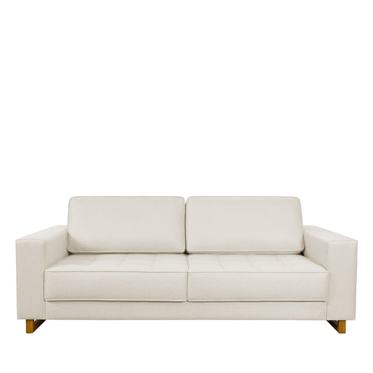 Sofá 3 Lugares Madrid 218 cm - Linho Texturizado Bege c/ Natural