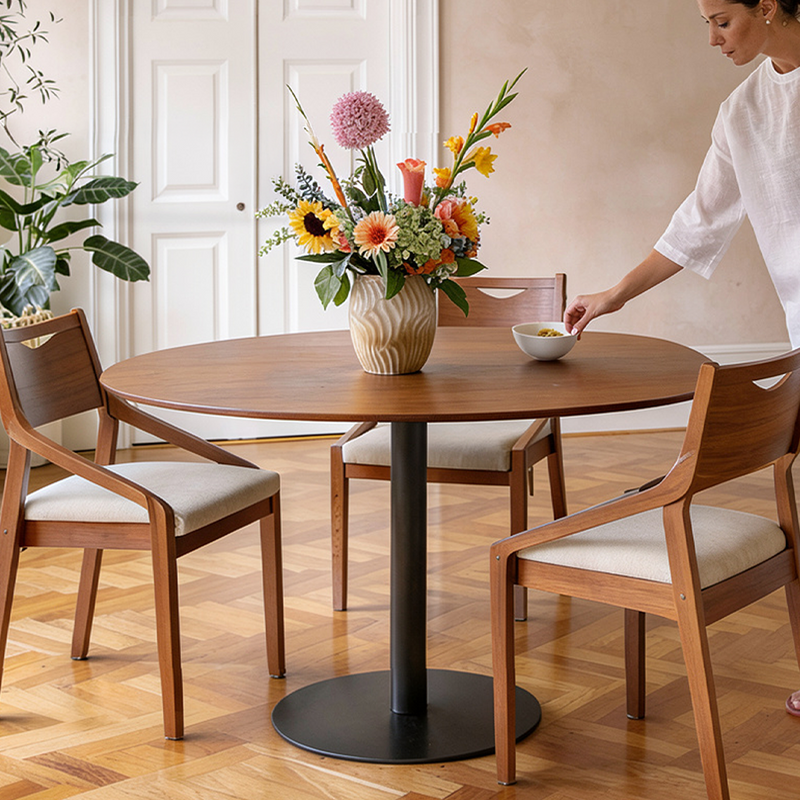 Conjunto de Jantar Mesa Redonda com Vidro Bennett 115 cm 4 Cadeiras New Drop - Natural c/ Off White