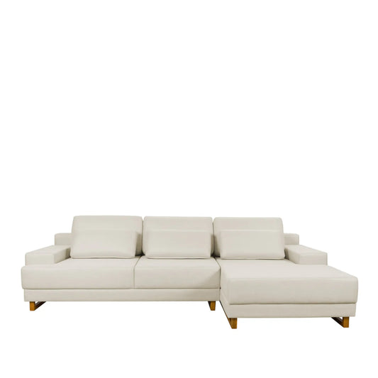 Sofá 6 Lugares com Chaise Lado Esquerdo Mônaco 330 cm - Linho Texturizado Bege c/ Natural