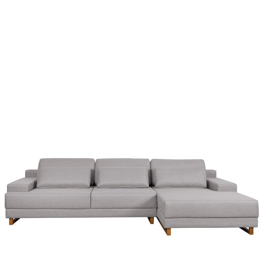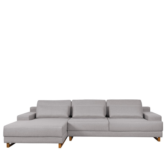 Sofá 6 Lugares com Chaise Lado Esquerdo Mônaco 330 cm - Linho Texturizado Cinza c/ Natural