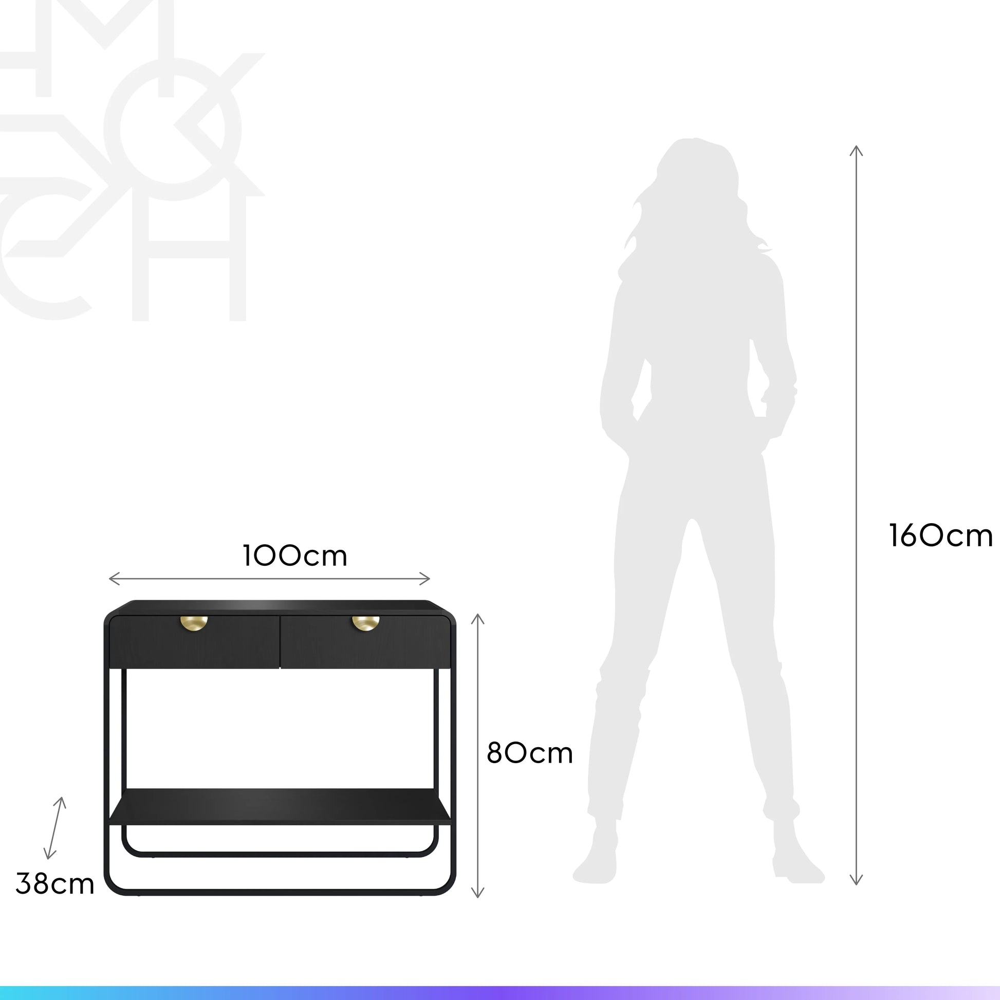 Aparador com 2 Gavetas Dunna 100 cm - Preto c/ Dourado
