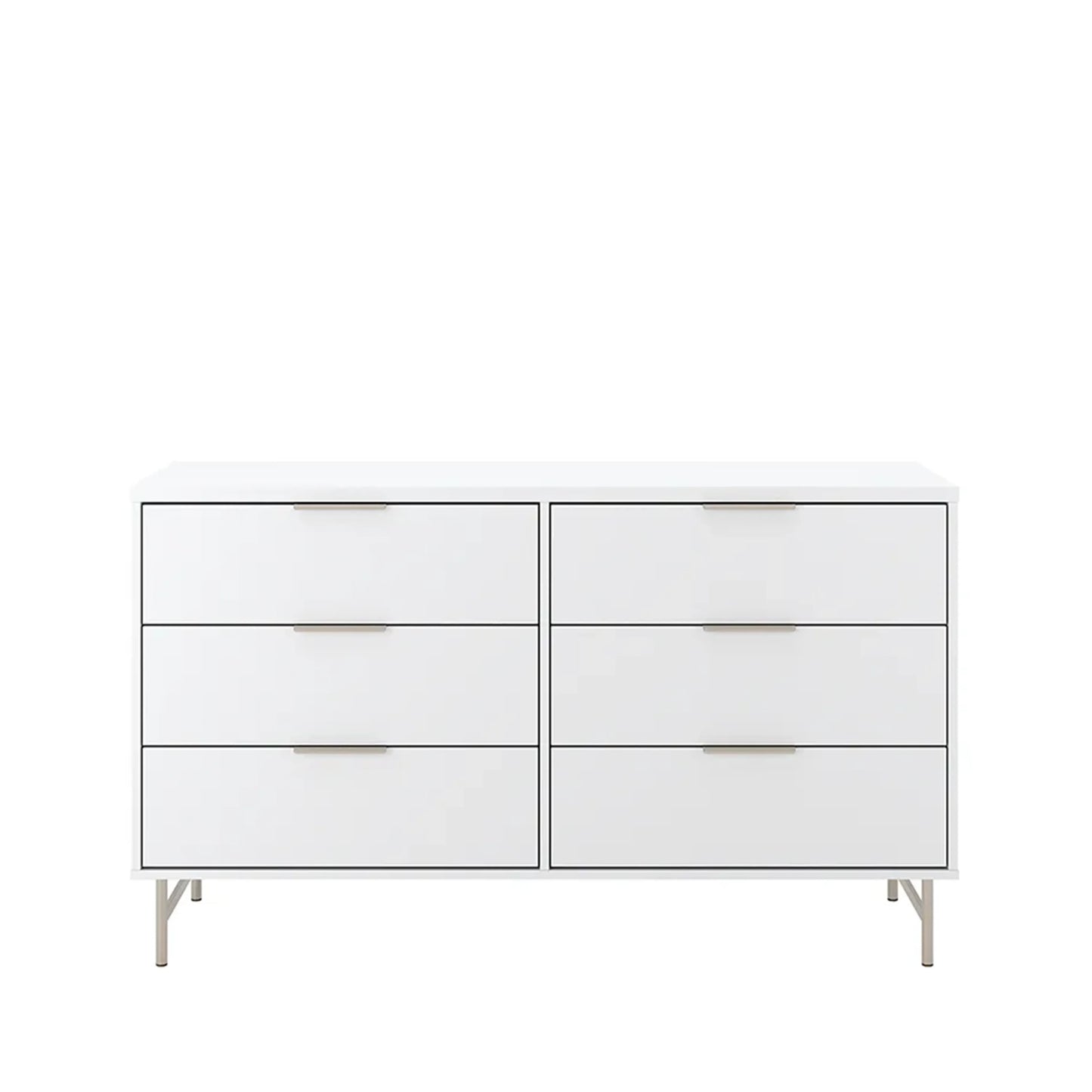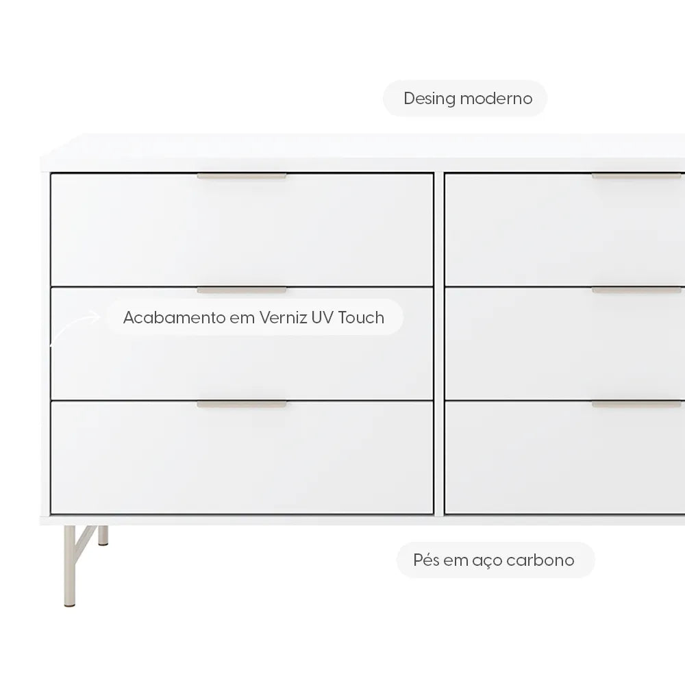 Cômoda 6 Gavetas Yves 135 cm - Branco Fosco c/ Champanhe