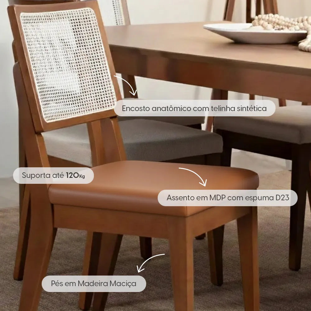 Cadeira de Madeira Maciça Estofada Saga - Natural c/ PU Caramelo - Palhinha