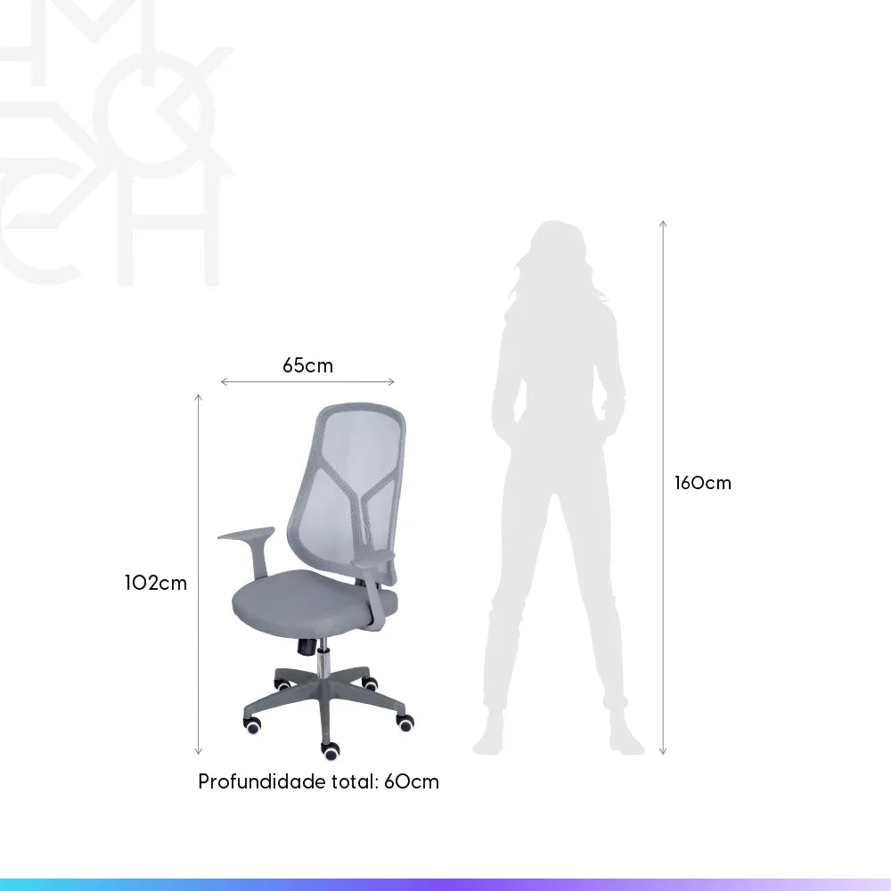 Cadeira de Escritório Giratória com Regulagem de Altura Sean - Cinza