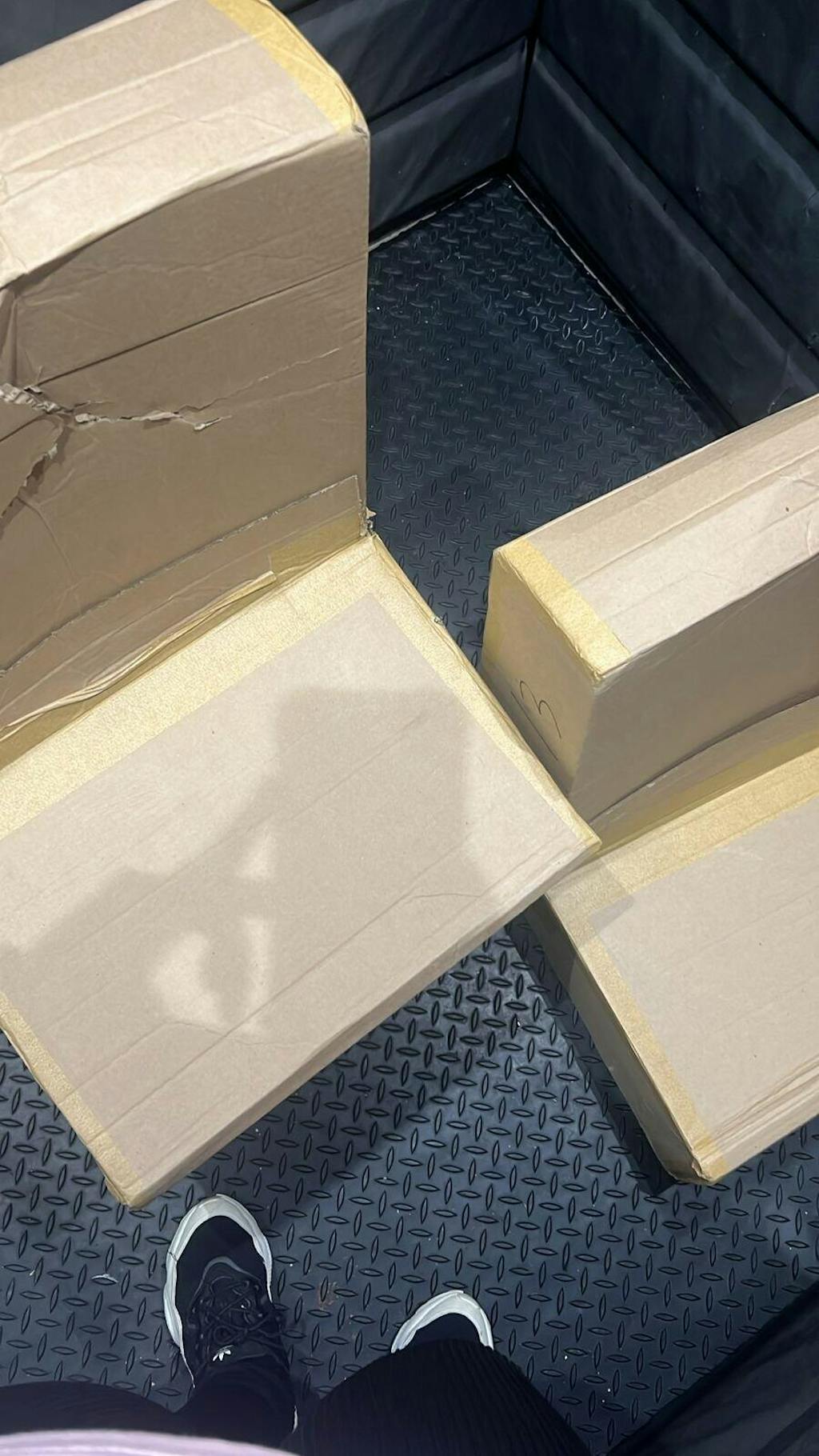Sapatas embutidas nas pontas dos pés.