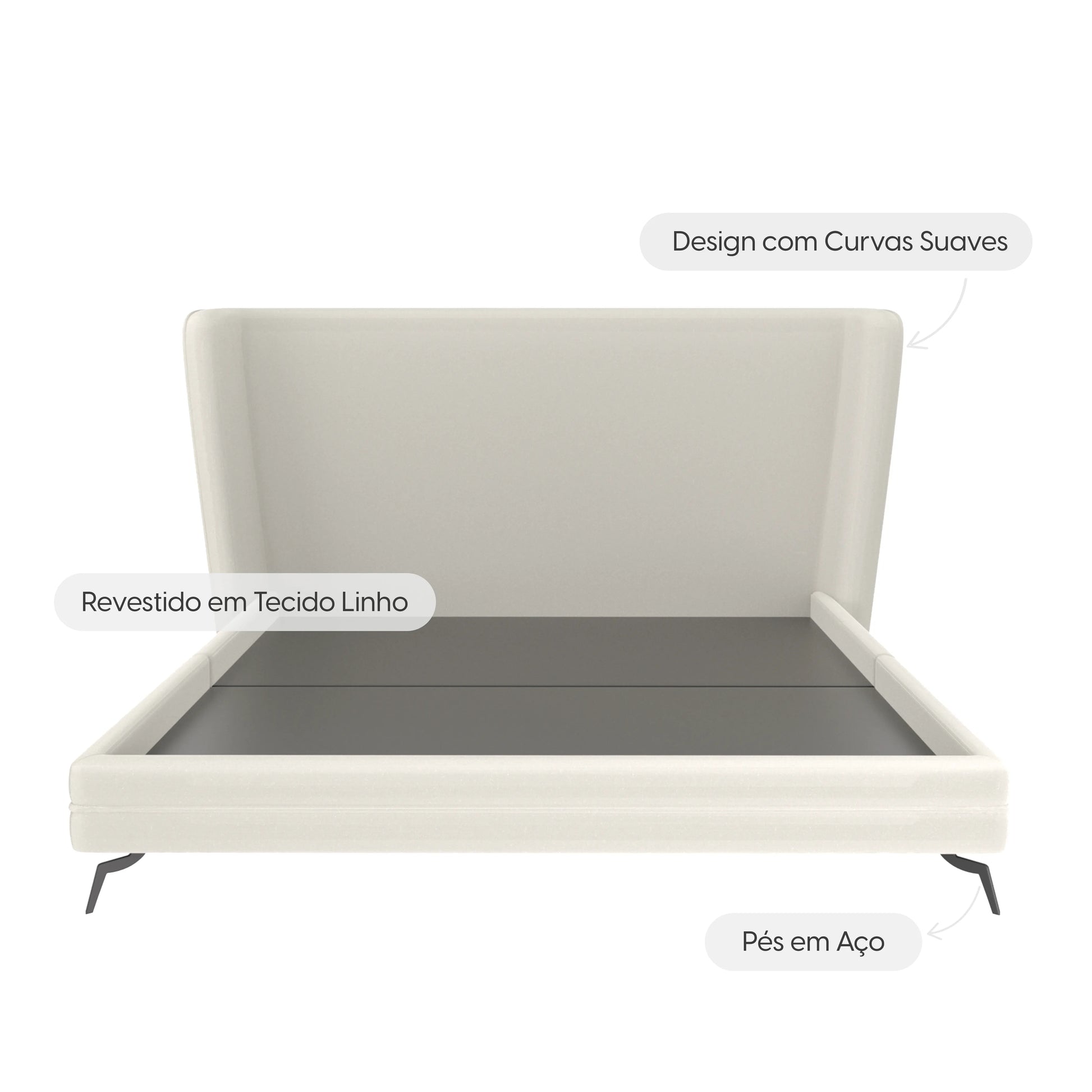 Cama Estofada Casal com Cabeceira Elara - Linho Off White