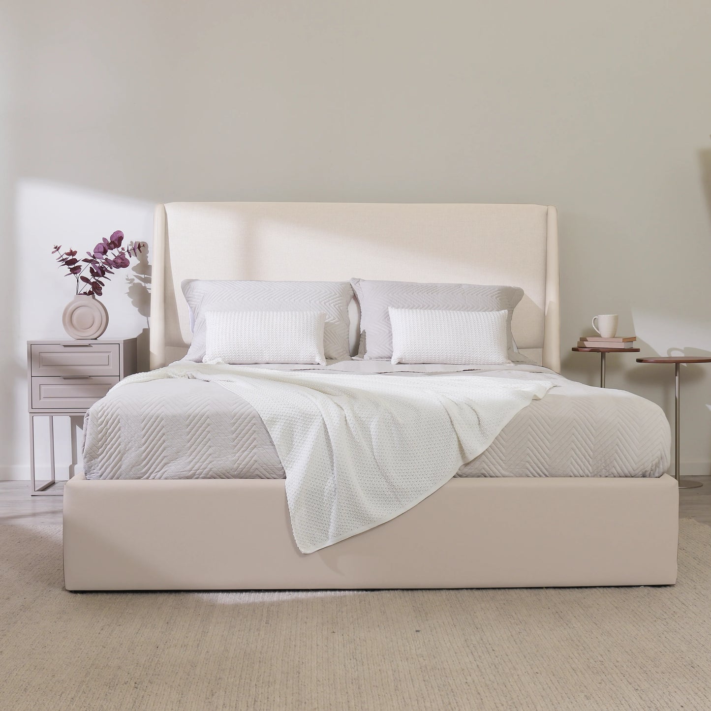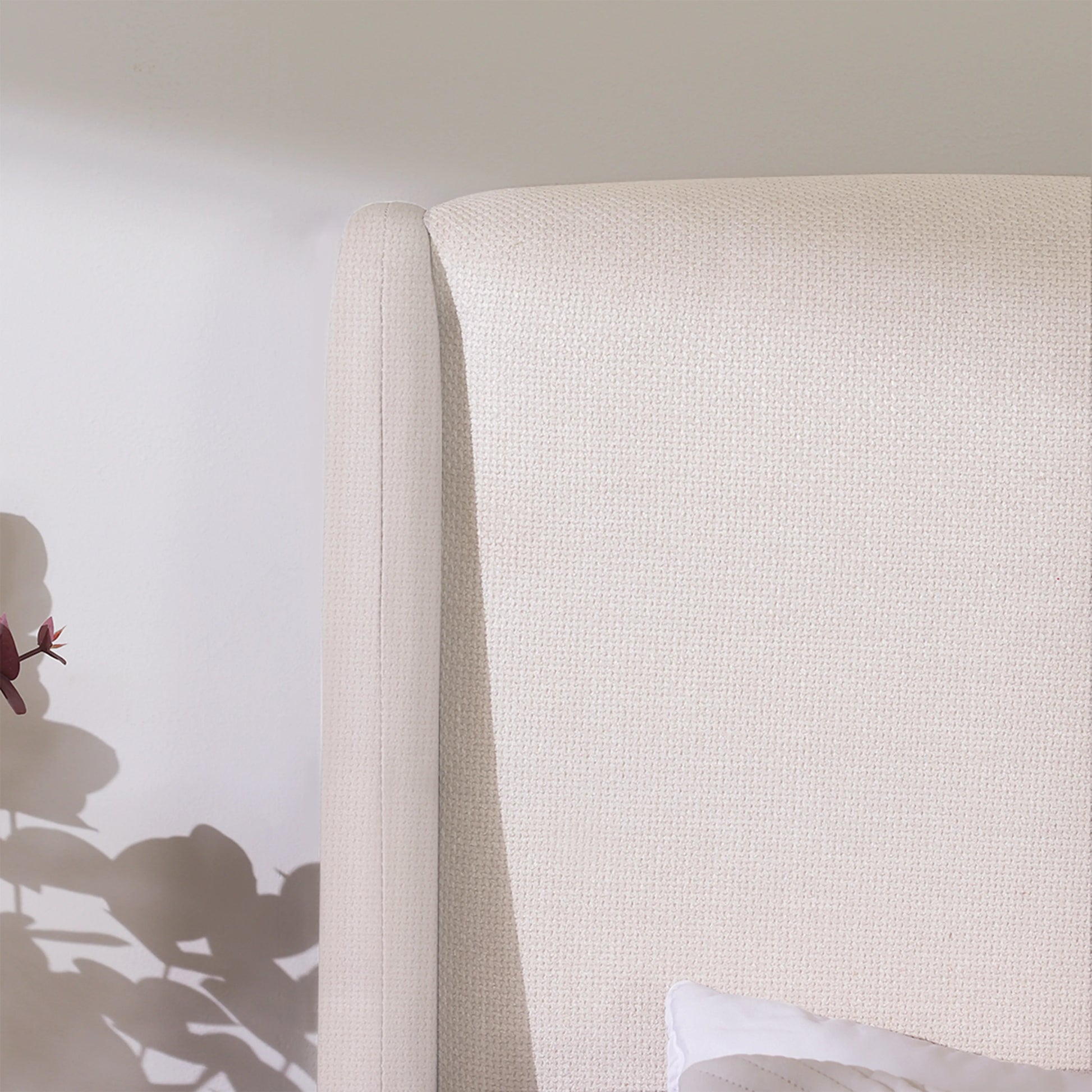 Cama Estofada Queen com Cabeceira Aurora - Linho Texturizado Off White