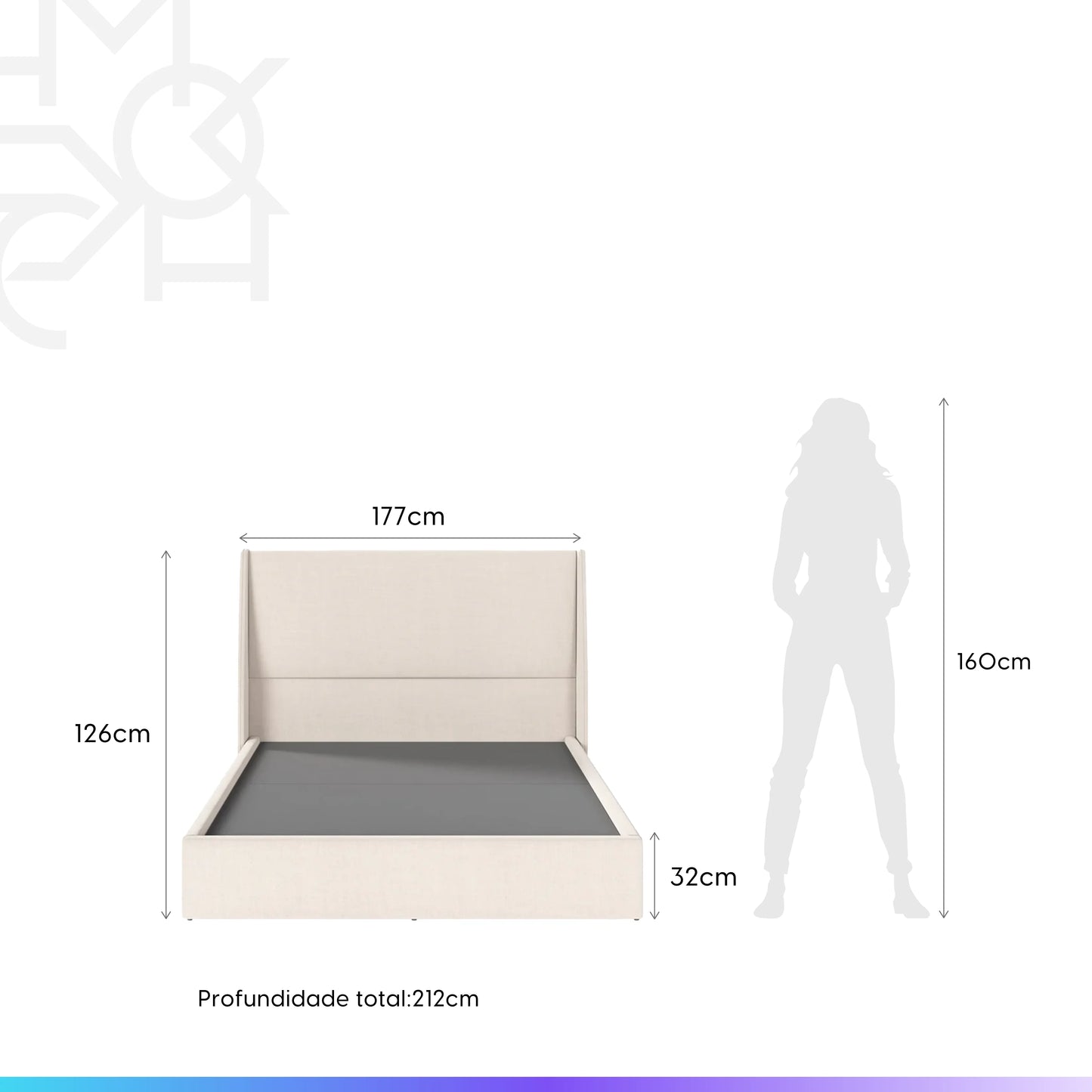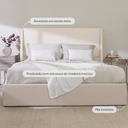 Pronta Entrega11% OFF12% OFF! Use o cupom: LIQUIDA12Cama Estofada King com Cabeceira Aurora - Linho Texturizado Off White