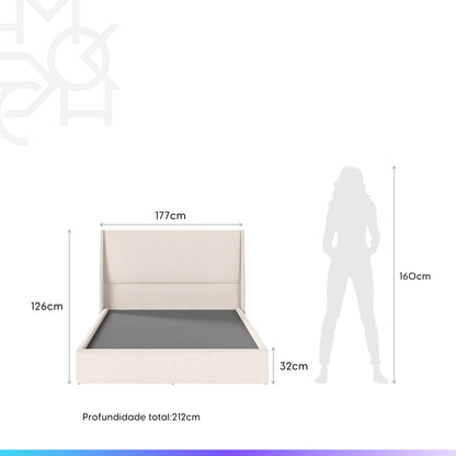 Pronta Entrega11% OFF12% OFF! Use o cupom: LIQUIDA12Cama Estofada de Casal com Cabeceira Aurora - Linho Texturizado Off White