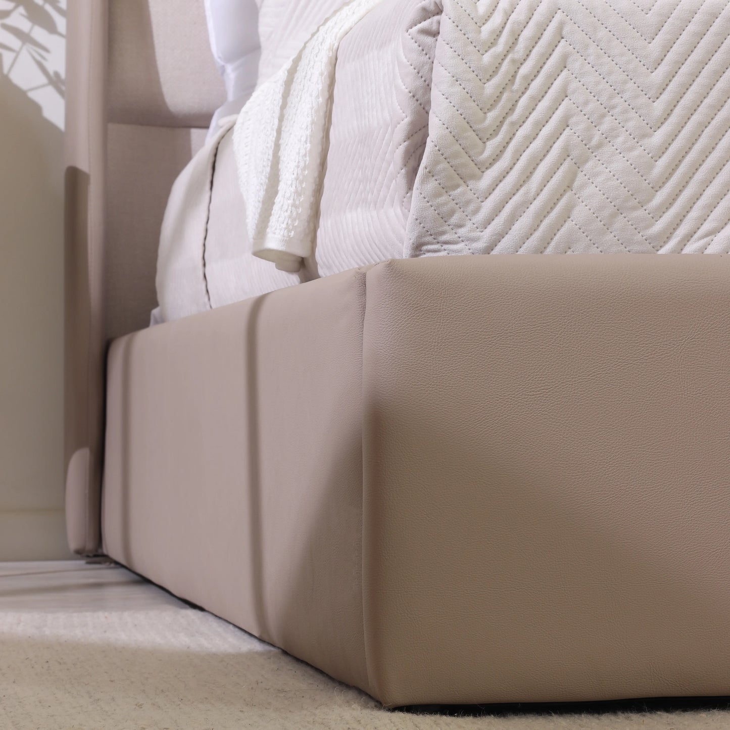 Box da cama estofado em espuma D-16 e revestido em tecido linho e PU.