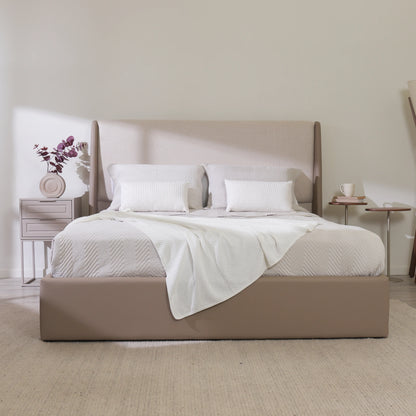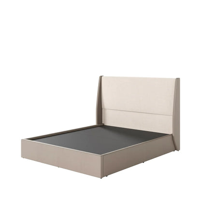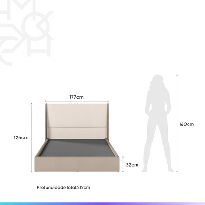 Cama sofisticada e acolhedora, base robusta e cabeceira curva que adiciona elegância ao design.