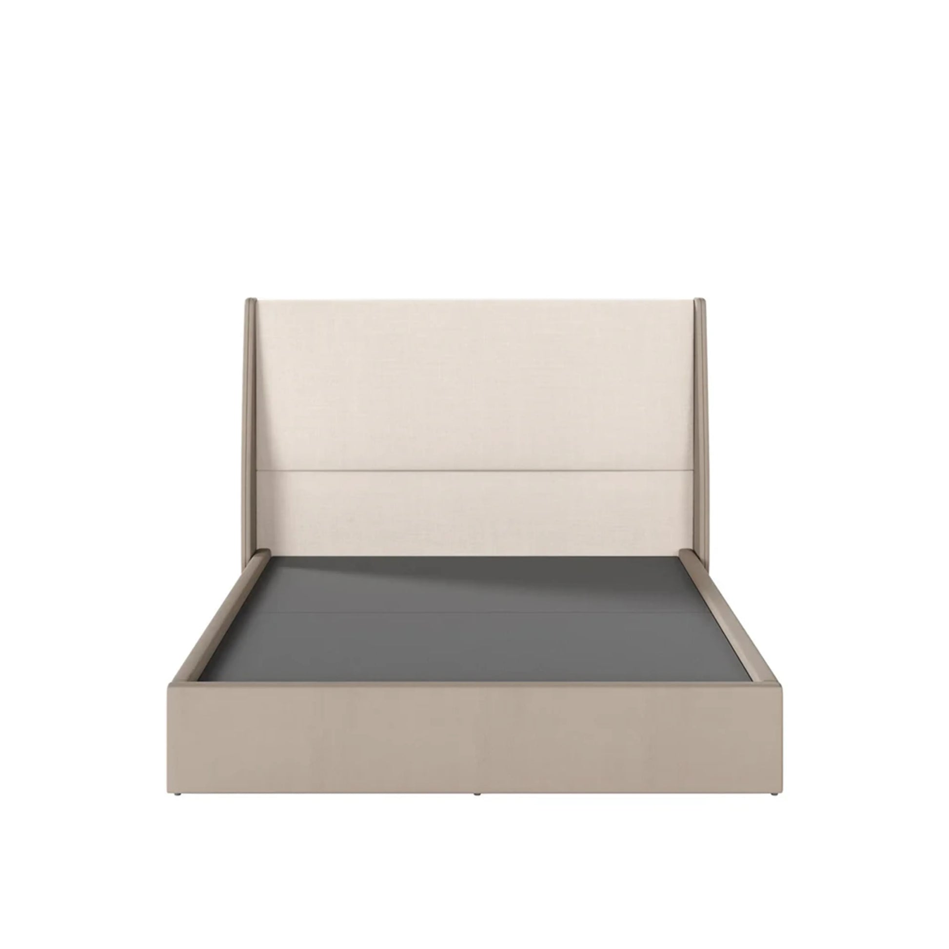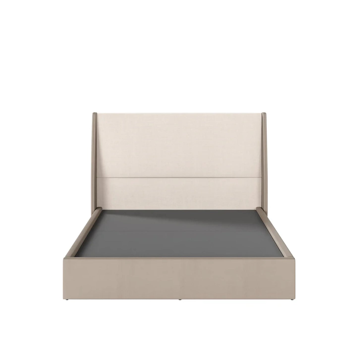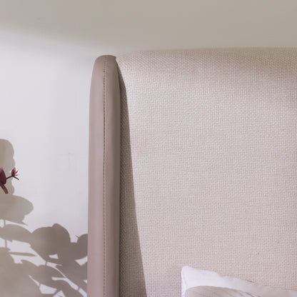 Cama Estofada Queen com Cabeceira Ayla - Linho Texturizado Off White c/ PU Fendi