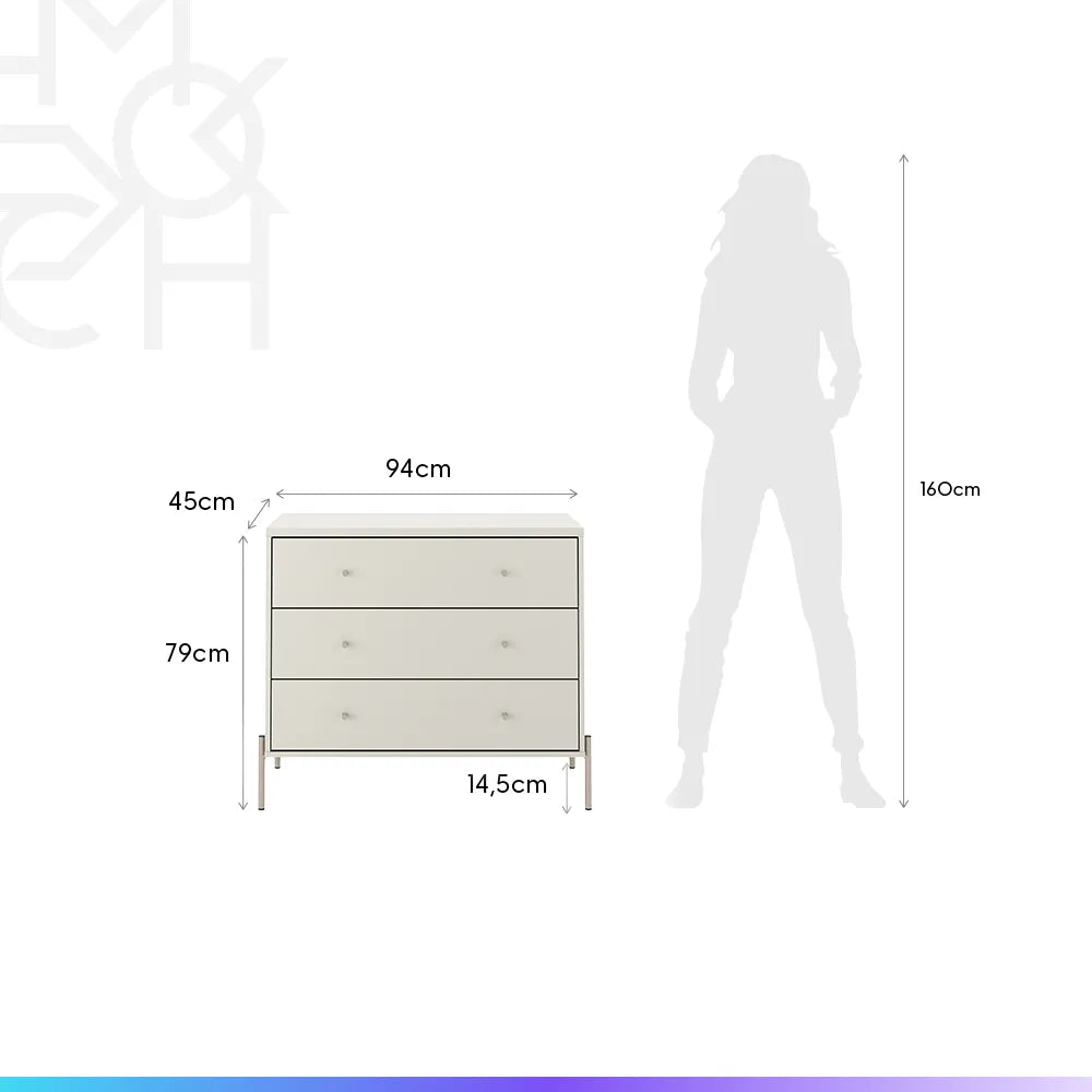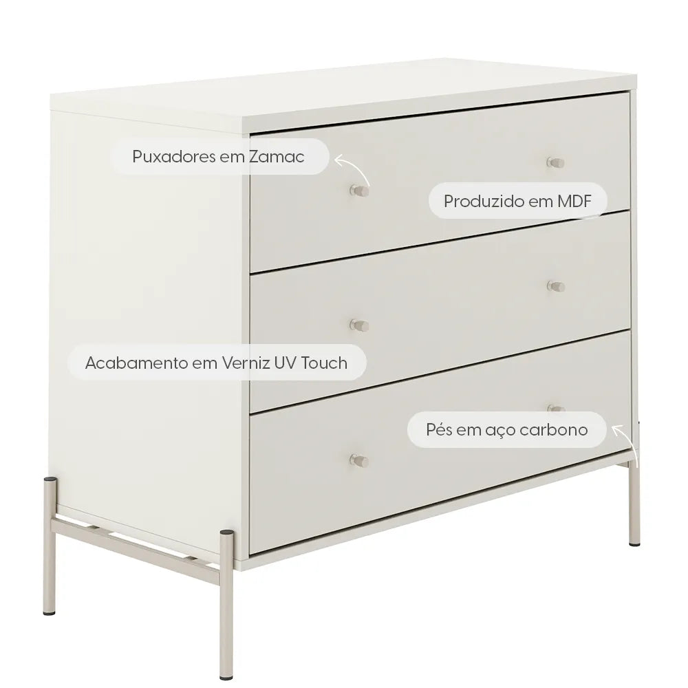 Cômoda 3 Gavetas Jasper 94 cm - Off White Fosco c/ Champanhe