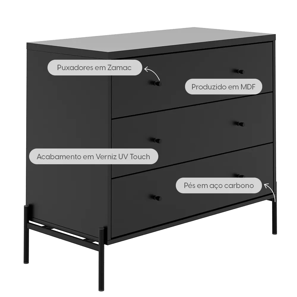 Cômoda 3 Gavetas Jasper 94 cm - Preto Fosco