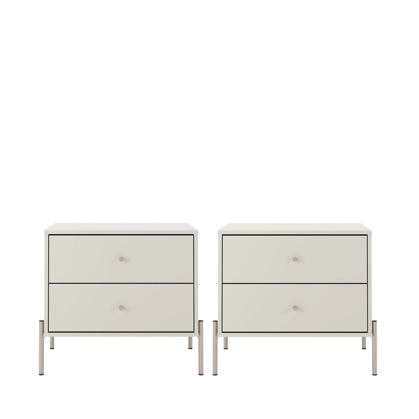 Conjunto 2 Mesas de Cabeceira 2 Gavetas Jasper 64 cm - Off White Fosco c/ Champanhe
