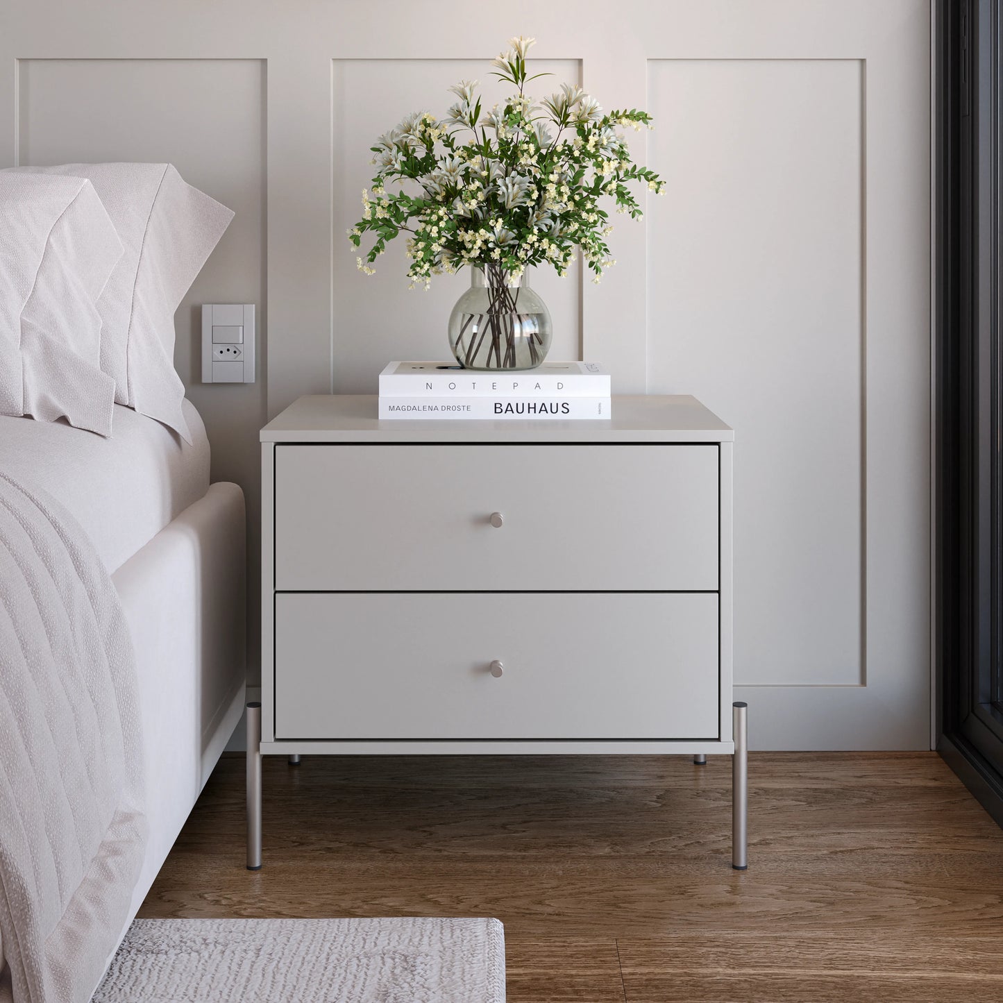 A mesa de cabeceira Jasper é a combinação perfeita de elegância e praticidade. Com duas gavetas espaçosas, que oferecem o armazenamento ideal para manter seus itens organizados no quarto ou em outros ambientes da casa.