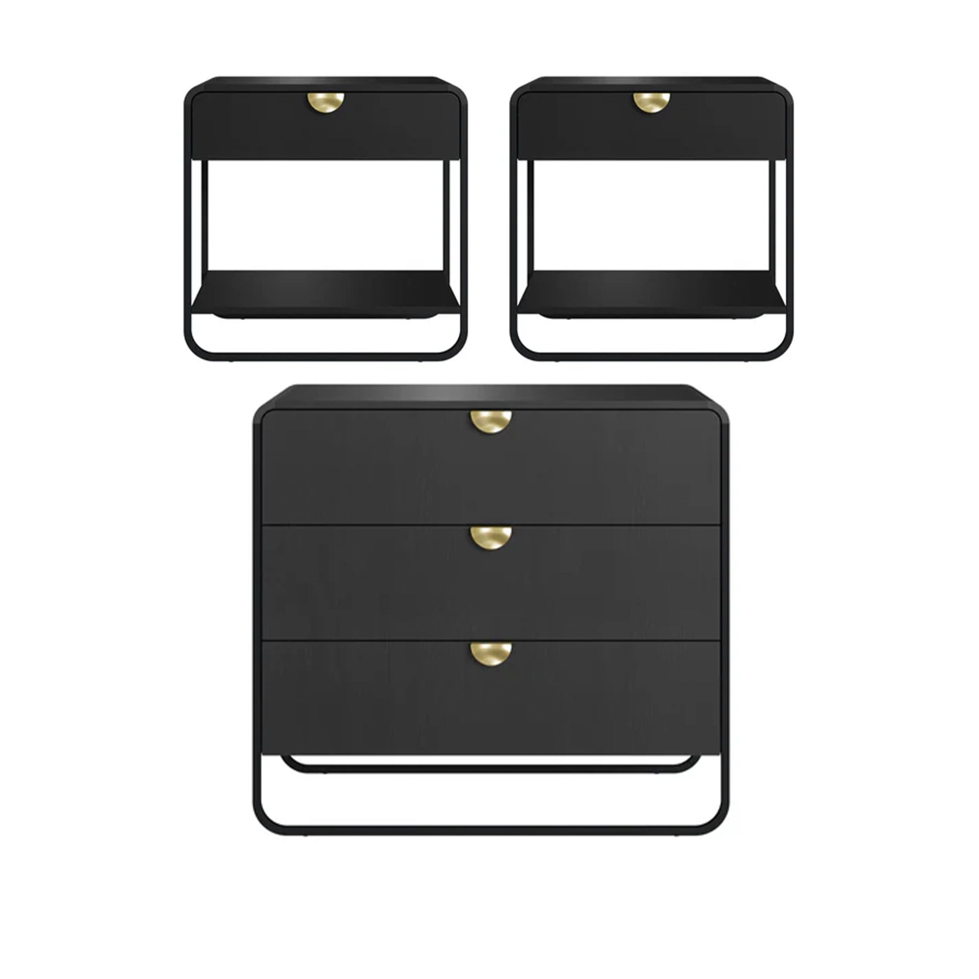 Conjunto 2 Mesas de Cabeceira com 1 Gaveta e Cômoda Dunna - Preto c/ Dourado