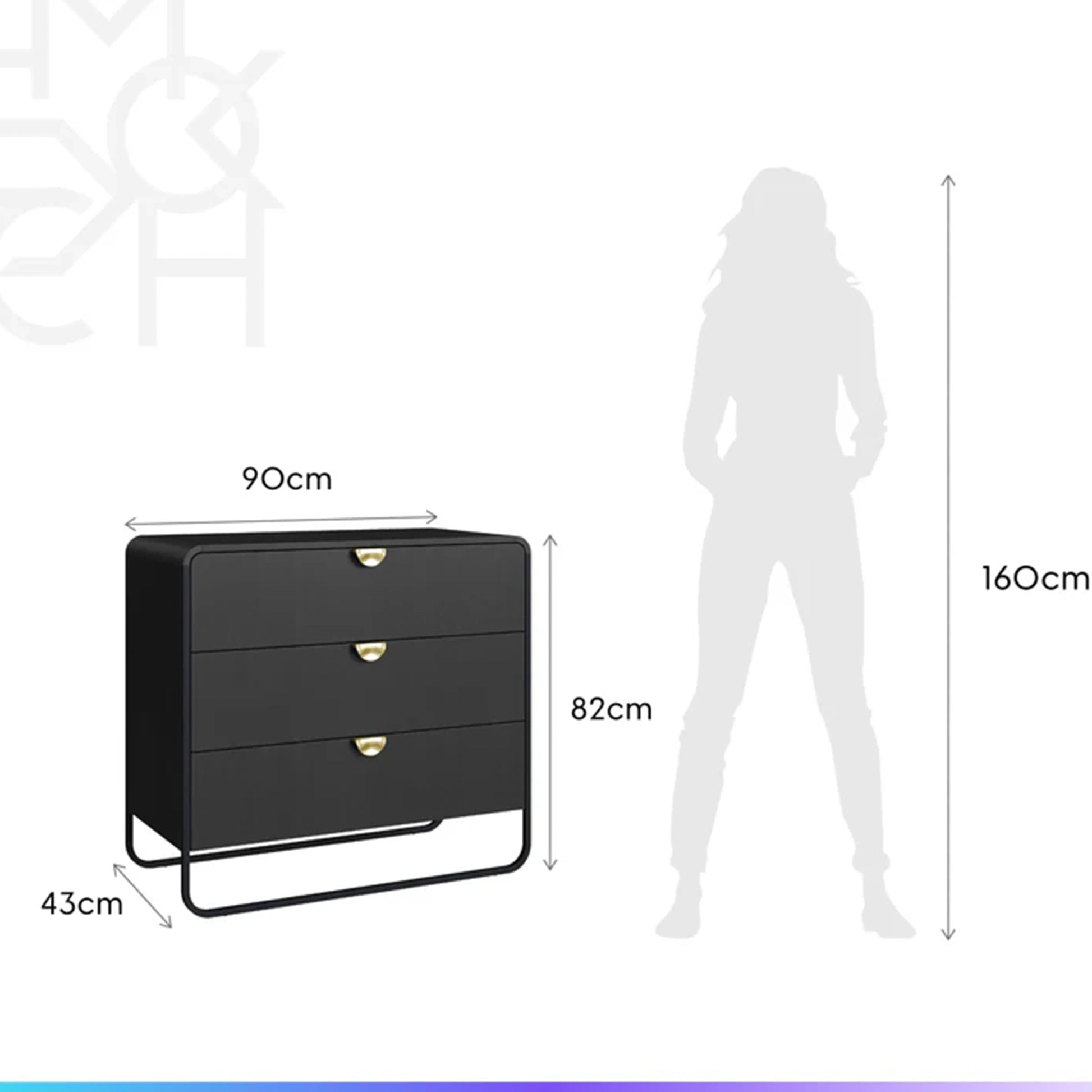 Três gavetas com corrediças telescópicas que garantem deslizamento suave e silencioso.