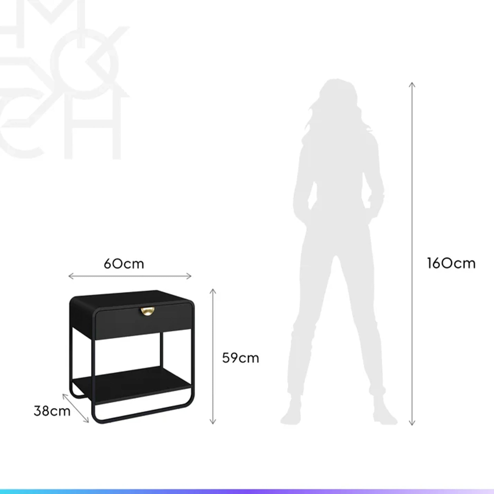 Mesa de Cabeceira com 1 Gaveta Dunna 60 cm - Preto c/ Dourado
