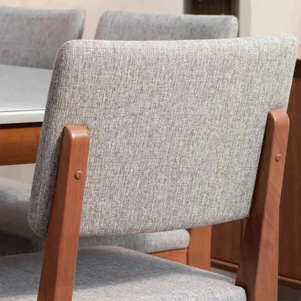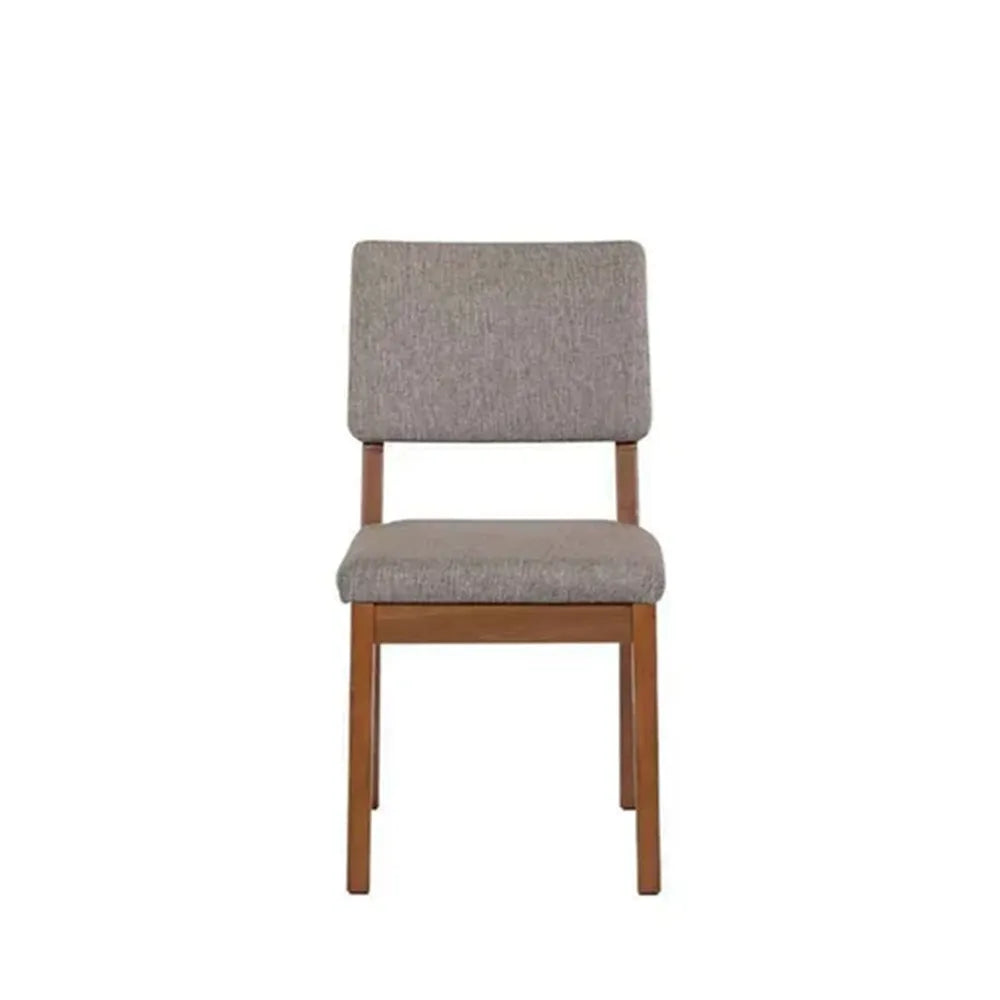 Conjunto com 8 Cadeiras de Madeira Maciça Estofada Ella - Natural c/ Linho Mescla Cinza