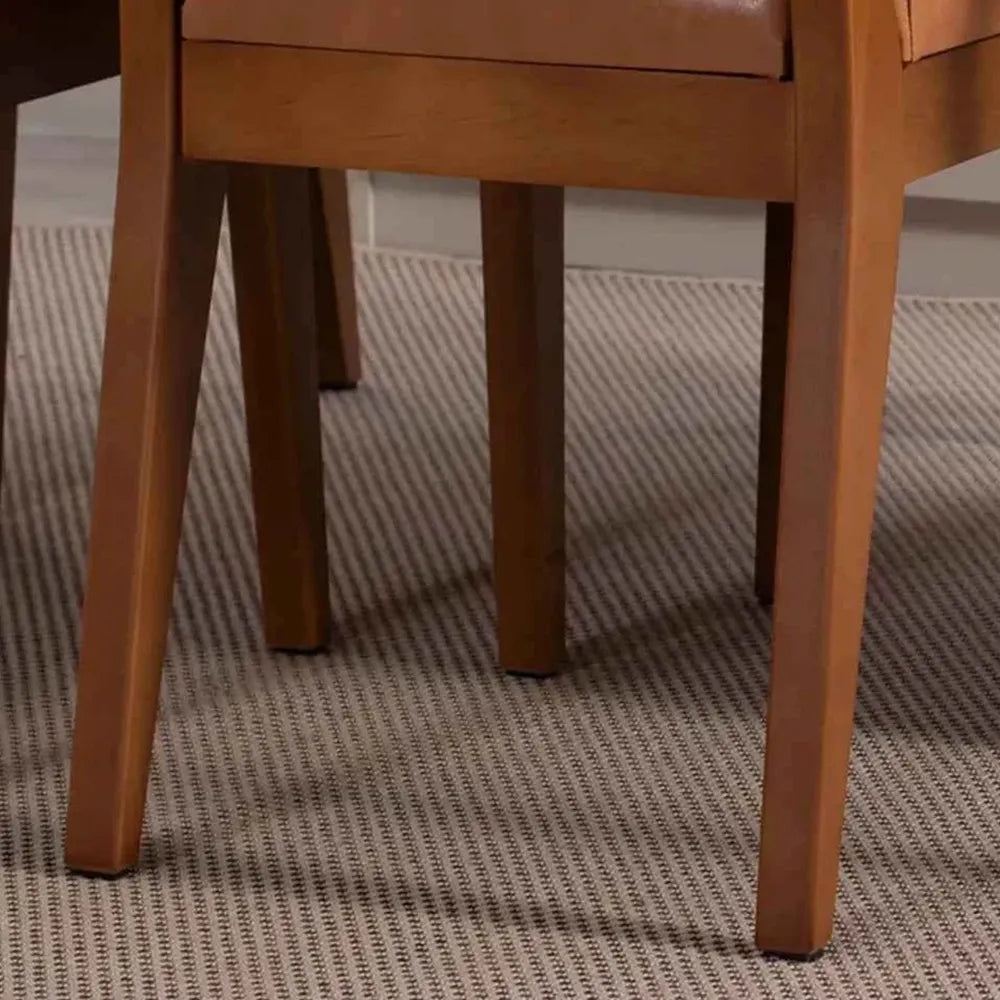 Conjunto com 8 Cadeiras de Madeira Maciça Estofada Ella - Natural c/ PU Caramelo