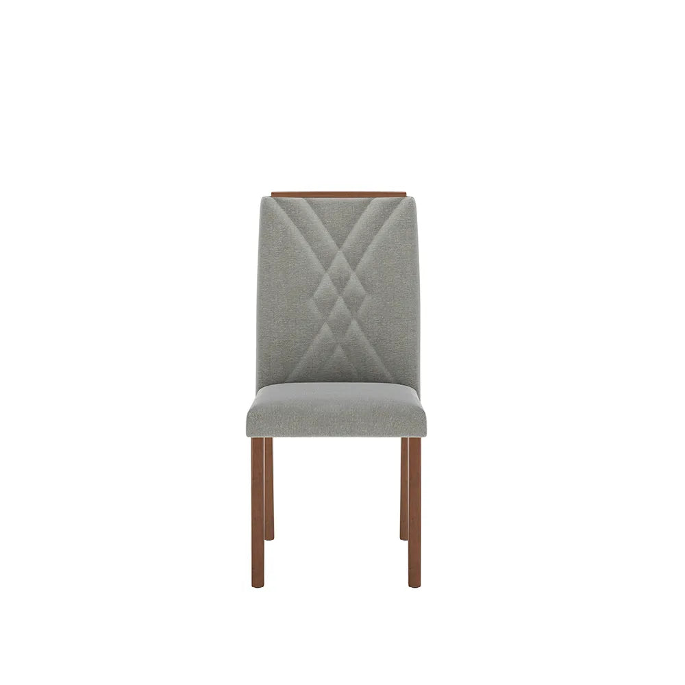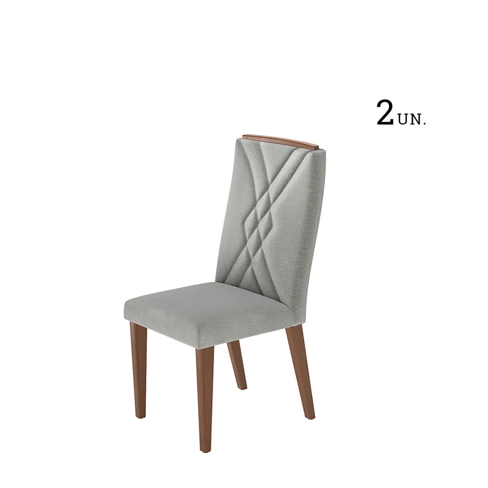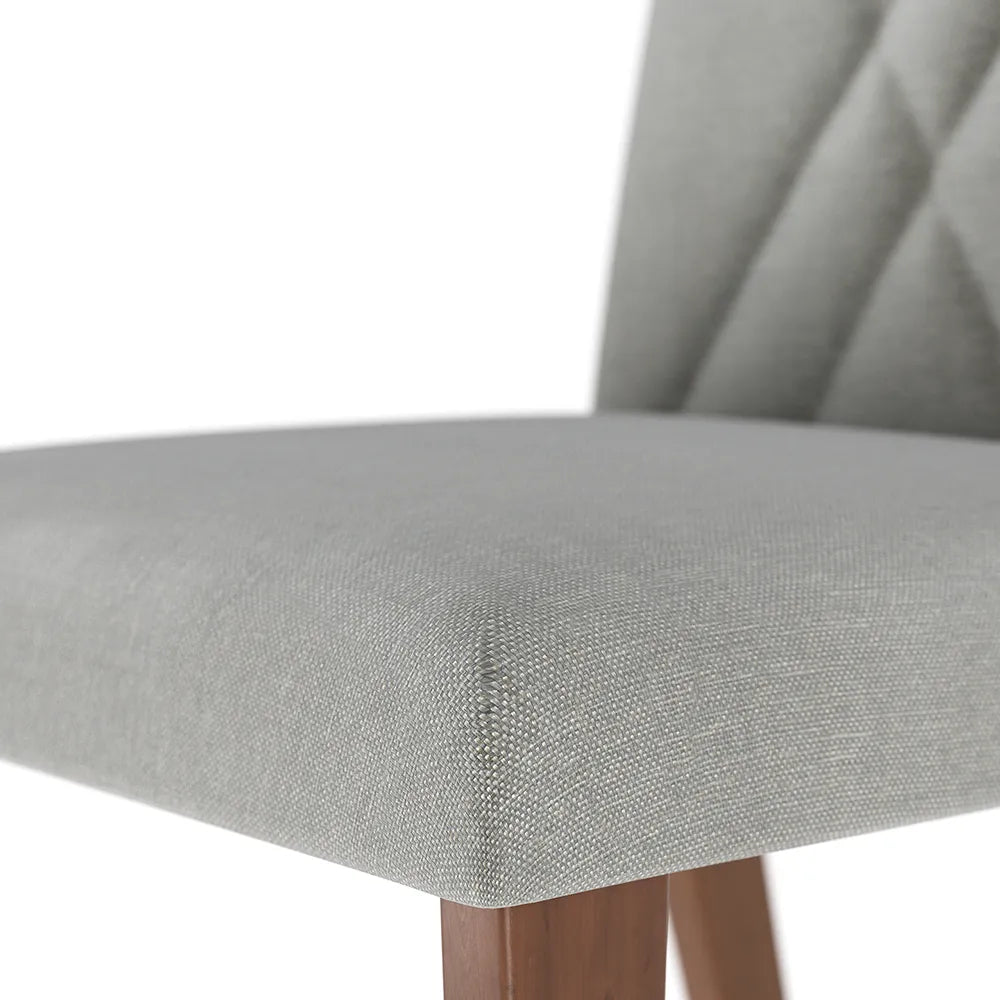 Conjunto de 2 Cadeiras de Madeira Maciça Estofada Megan - Natural c/ Linho Cinza