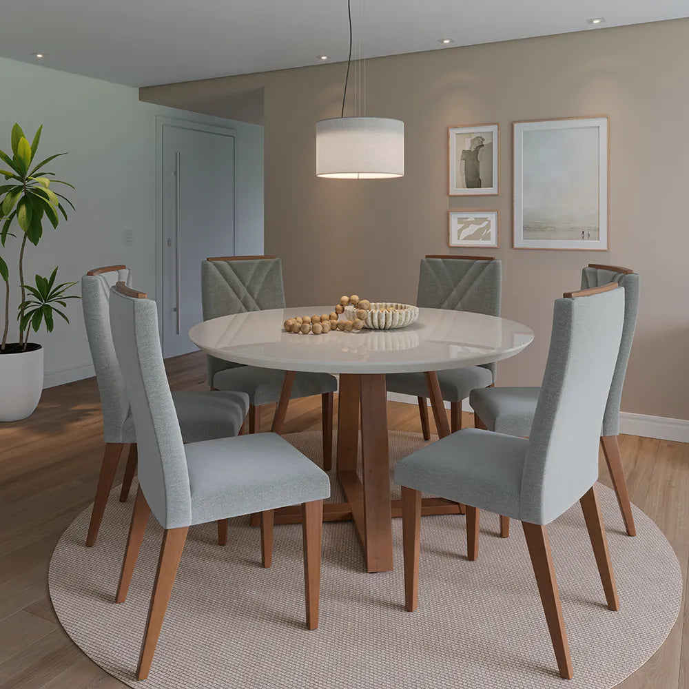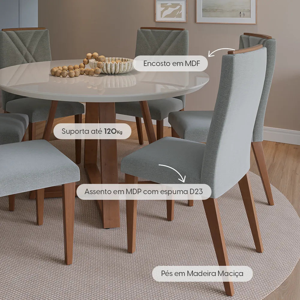 Pronta Entrega26% OFF12% OFF! Use o cupom: LIQUIDA12Mesa de Jantar Redonda c/ Vidro para 6 Lugares Bennett 135 cm - Natural c/ Off White Fosco