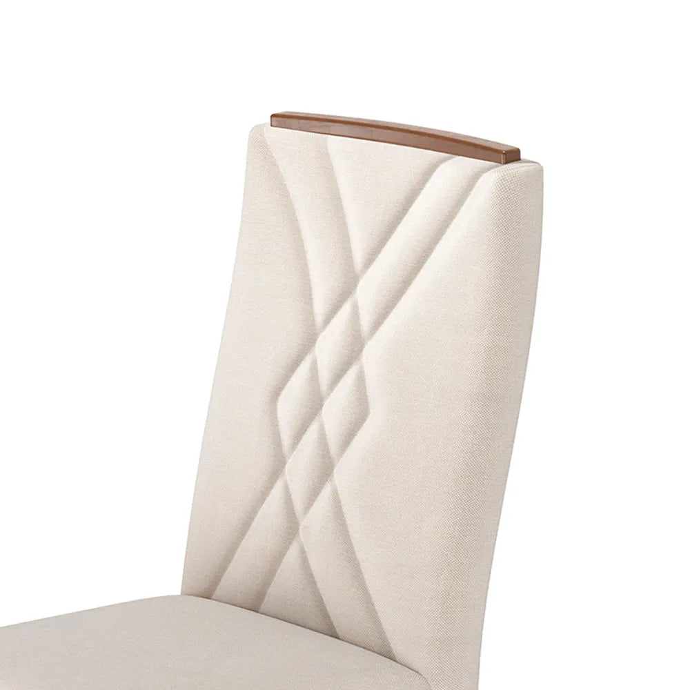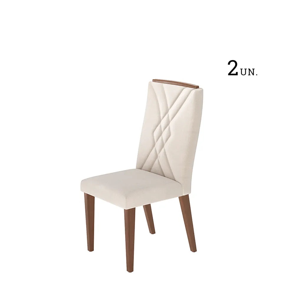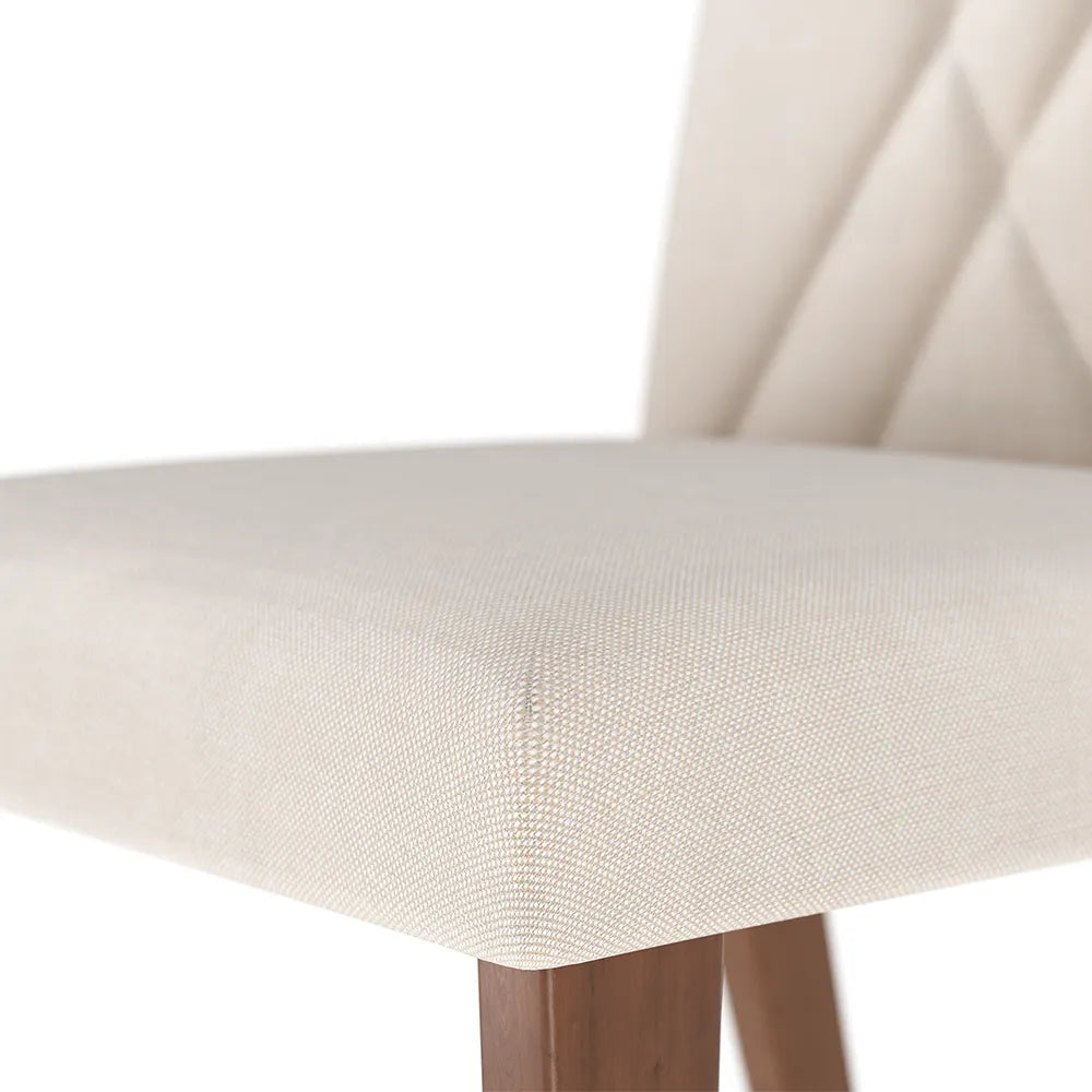 Conjunto de 2 Cadeiras de Madeira Maciça Estofada Megan - Natural c/ Linho Off White