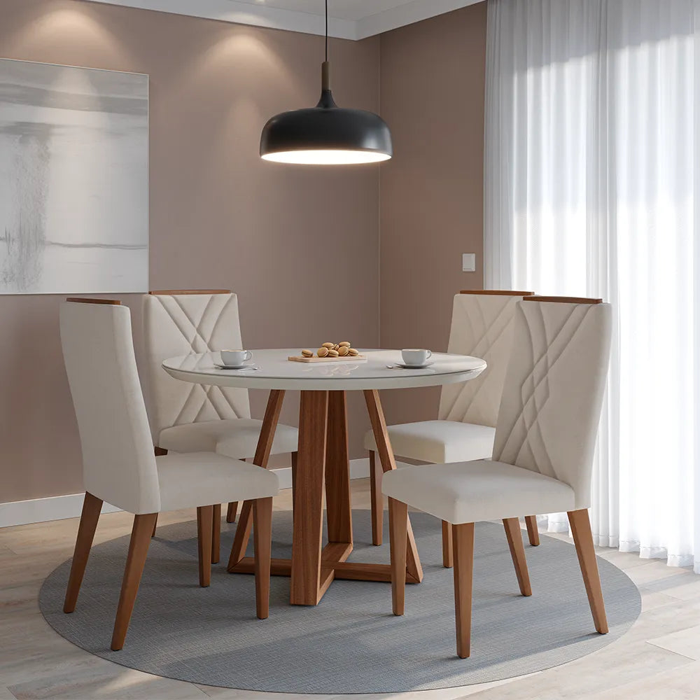 Pronta Entrega36% OFF12% OFF! Use o cupom: LIQUIDA12Mesa de Jantar Redonda c/ Vidro para 4 Lugares Bennett 115 cm - Natural c/ Off White